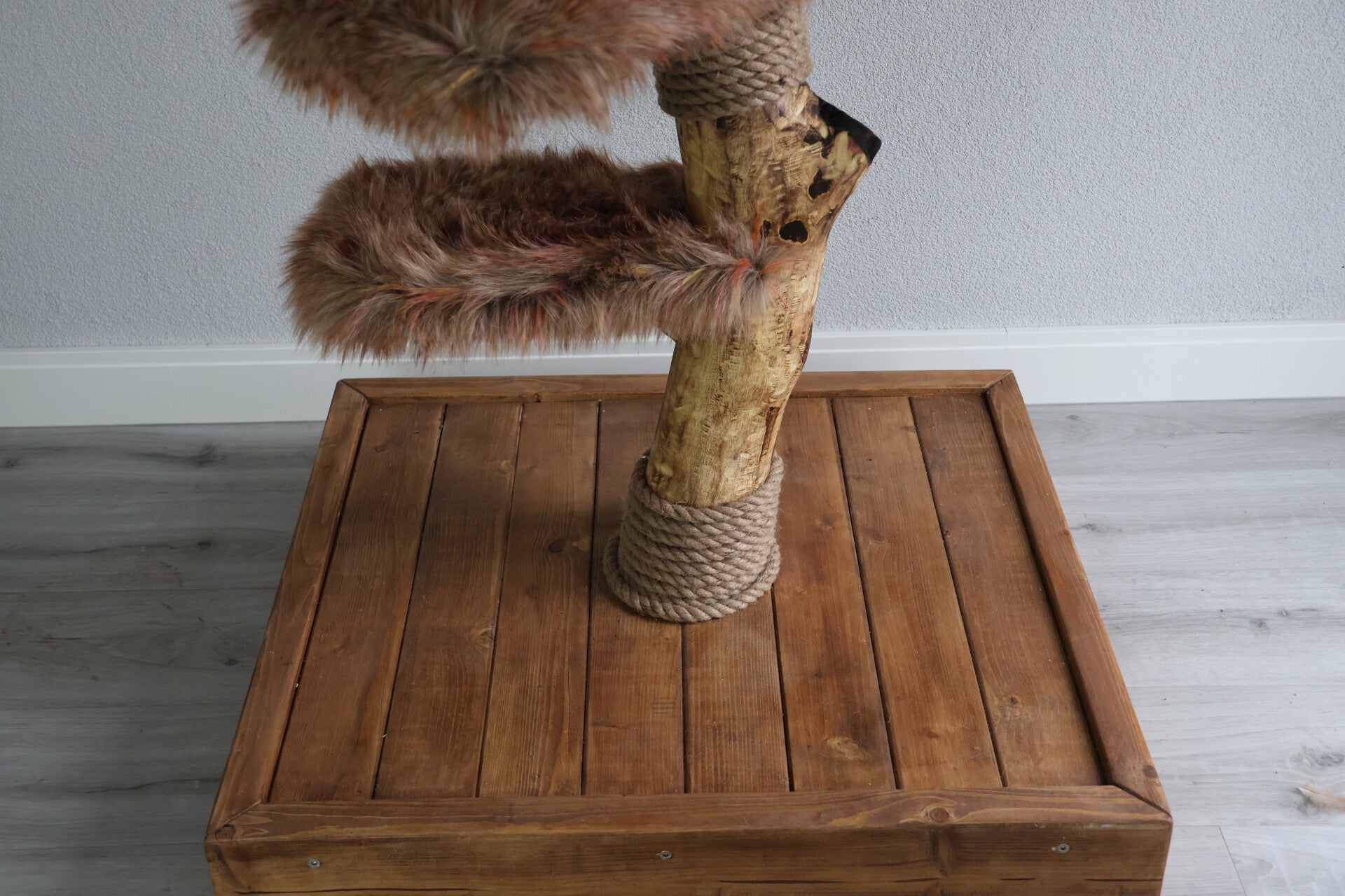 De krabpalen worden ondersteund door een massieve houten voet. Dit zorgt ervoor dat de krabpaal heel stabiel is en niet zomaar omvalt als uw kat er enthousiast in springt.